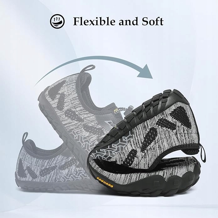 - ✅Противоскользящая и гибкая: противоскользящая резиновая подошва мягкая и гибкая, волнистый рисунок обеспечивает отличное сцепление босых ног с грязью, мхом и камнями.