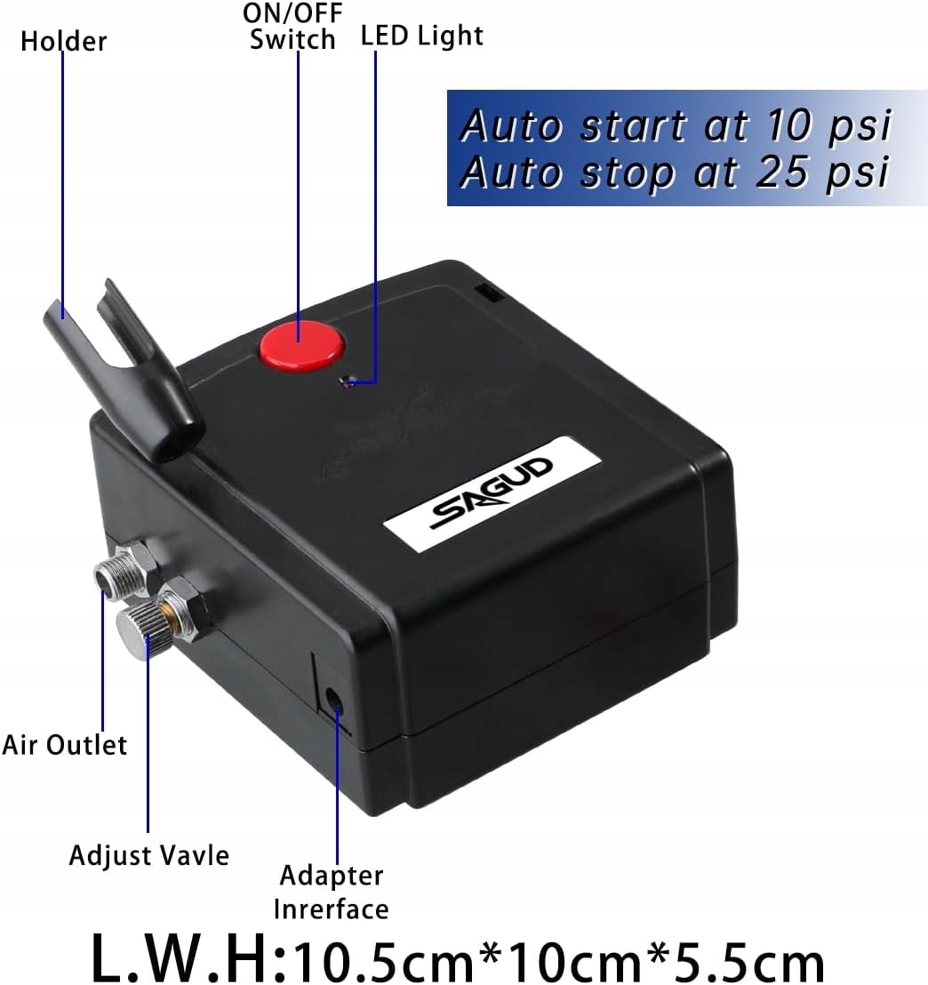 Sagud Professional Mini Airbrushkit Aerograph Set-Compressor