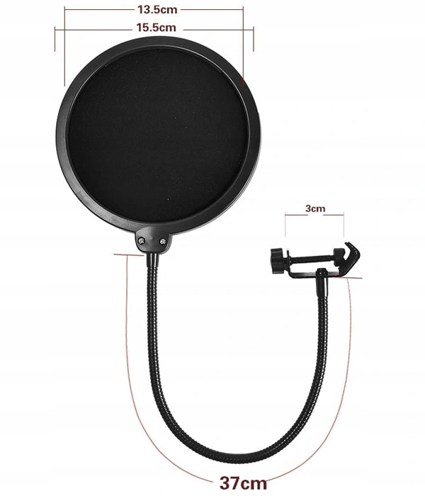 Студийный поп-микрофонный фильтр оснащен гибким держателем на 360° и регулируемым зажимом, подходящим для любой микрофонной стойки, высоту и угол которого можно свободно регулировать в соответствии с вашими потребностями.