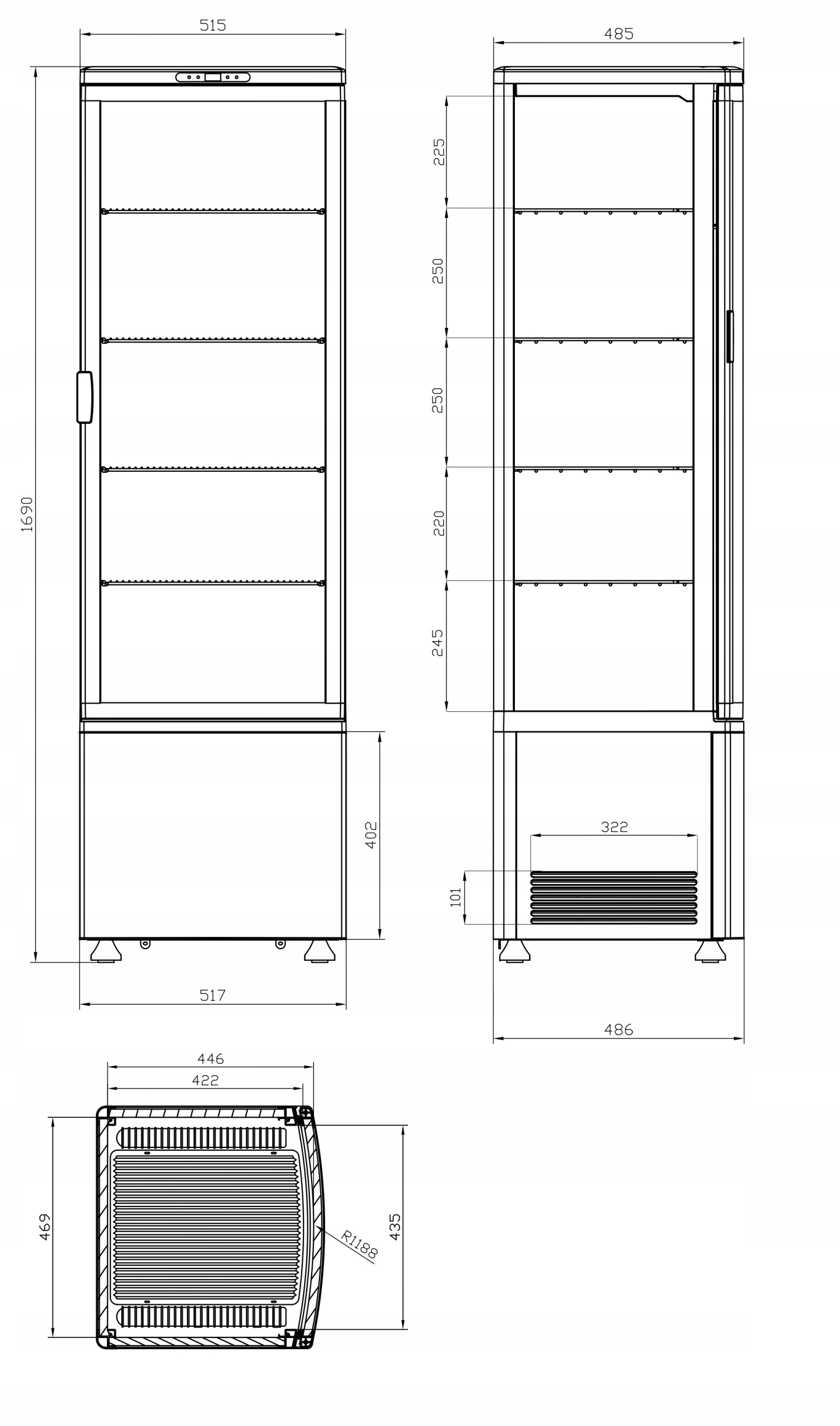 Коллективное стодное вертикальное белое светодиод 235L 51.5x48,5x169 см Техника h2>