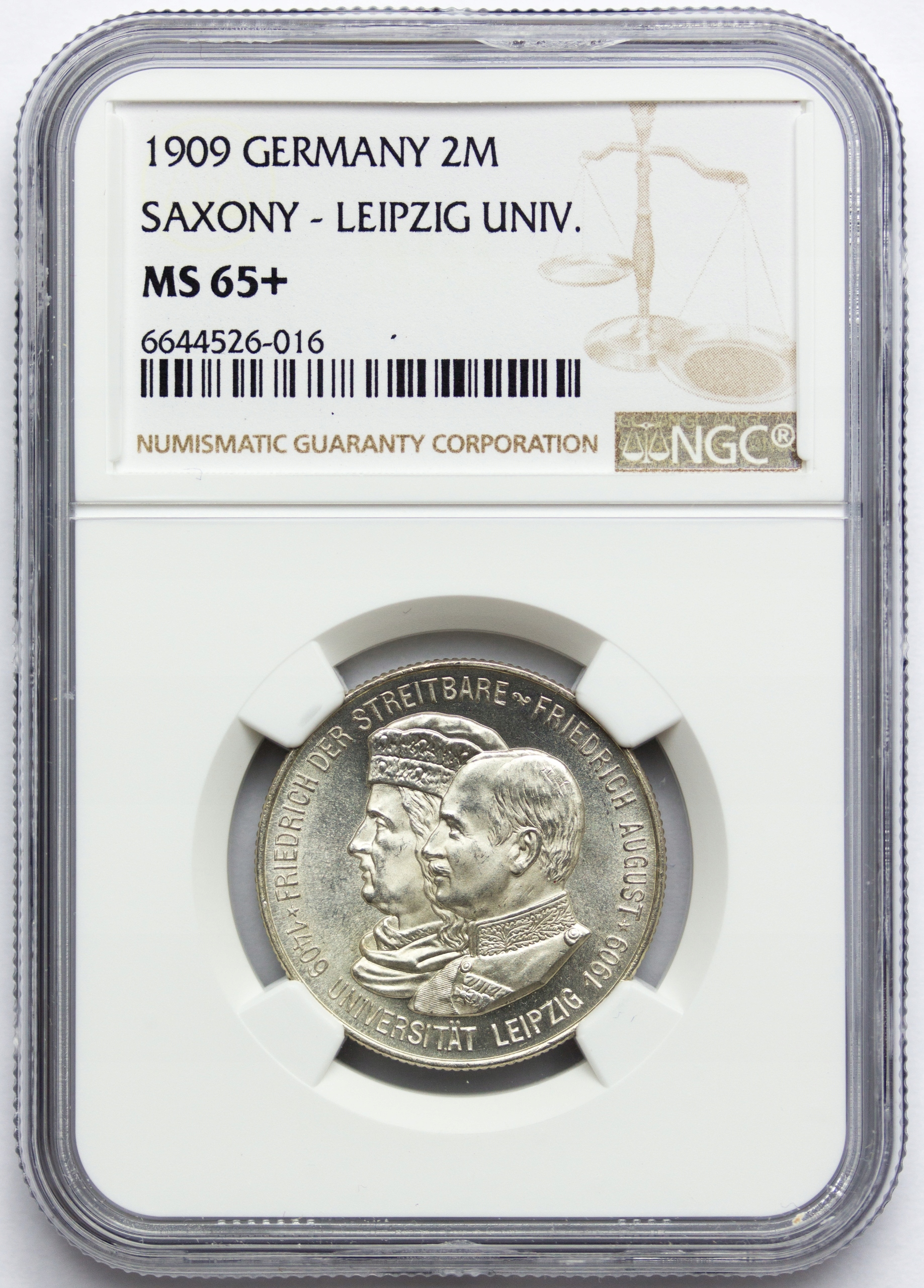 Саксонія, 2 позначки 1909 E, Лейпцизький університет, NGC MS65+
