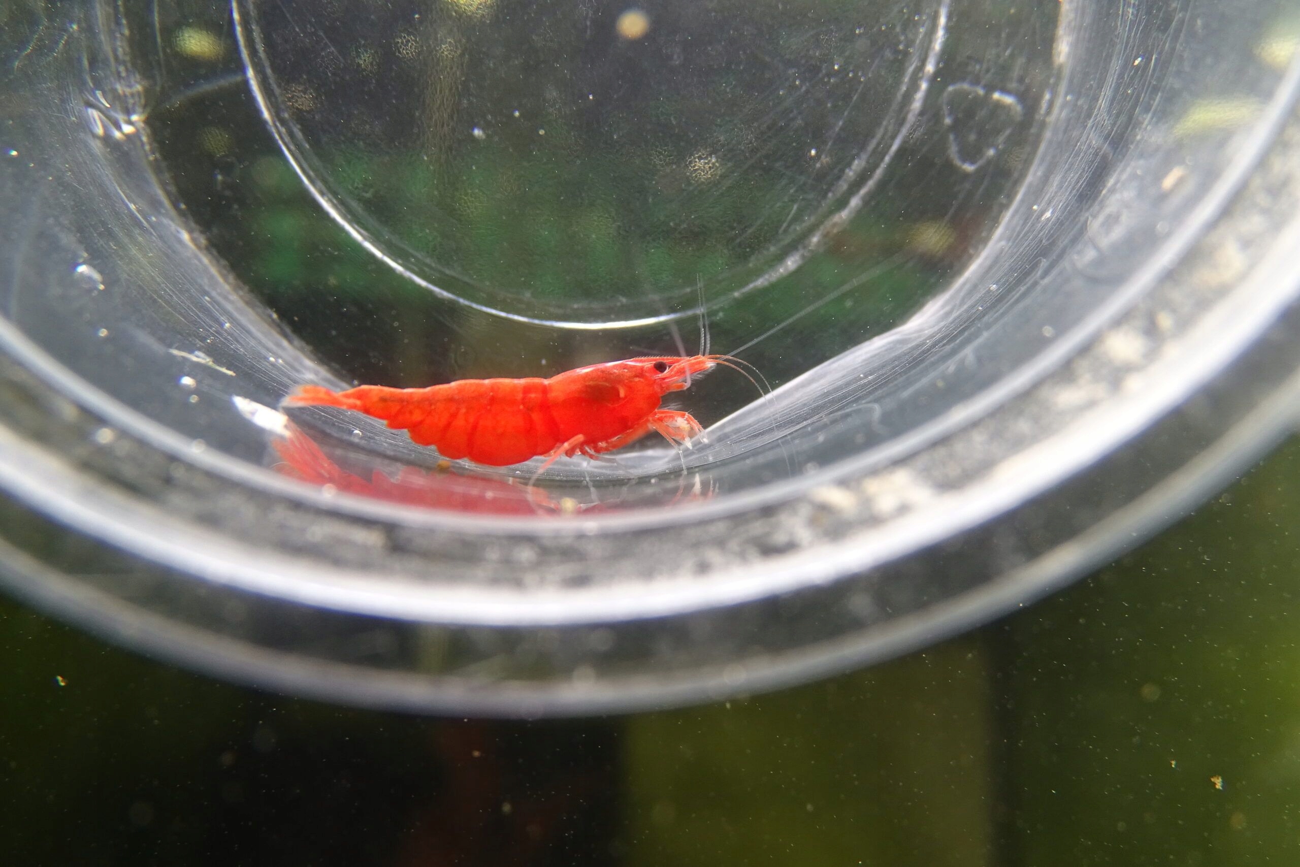 Описание:Красная креветка. Характерно, что красный пигмент смешивается путем селекции, что отличает их от обычных красных вишен. Красный цвет покрывает все тело, включая ноги.
