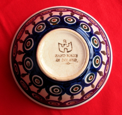 Это оригинальная керамика Болеславец, расписанная вручную экологическими красками с использованием штампов и кистей из морской губки.
