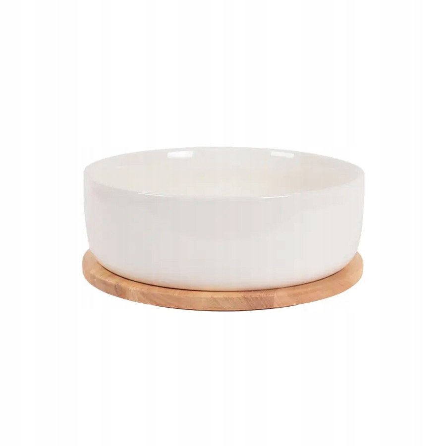 - ✅Материал: Фарфор (салатник), Дерево (подставка)