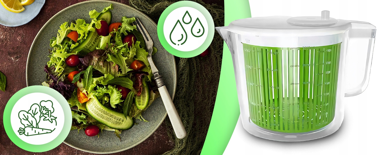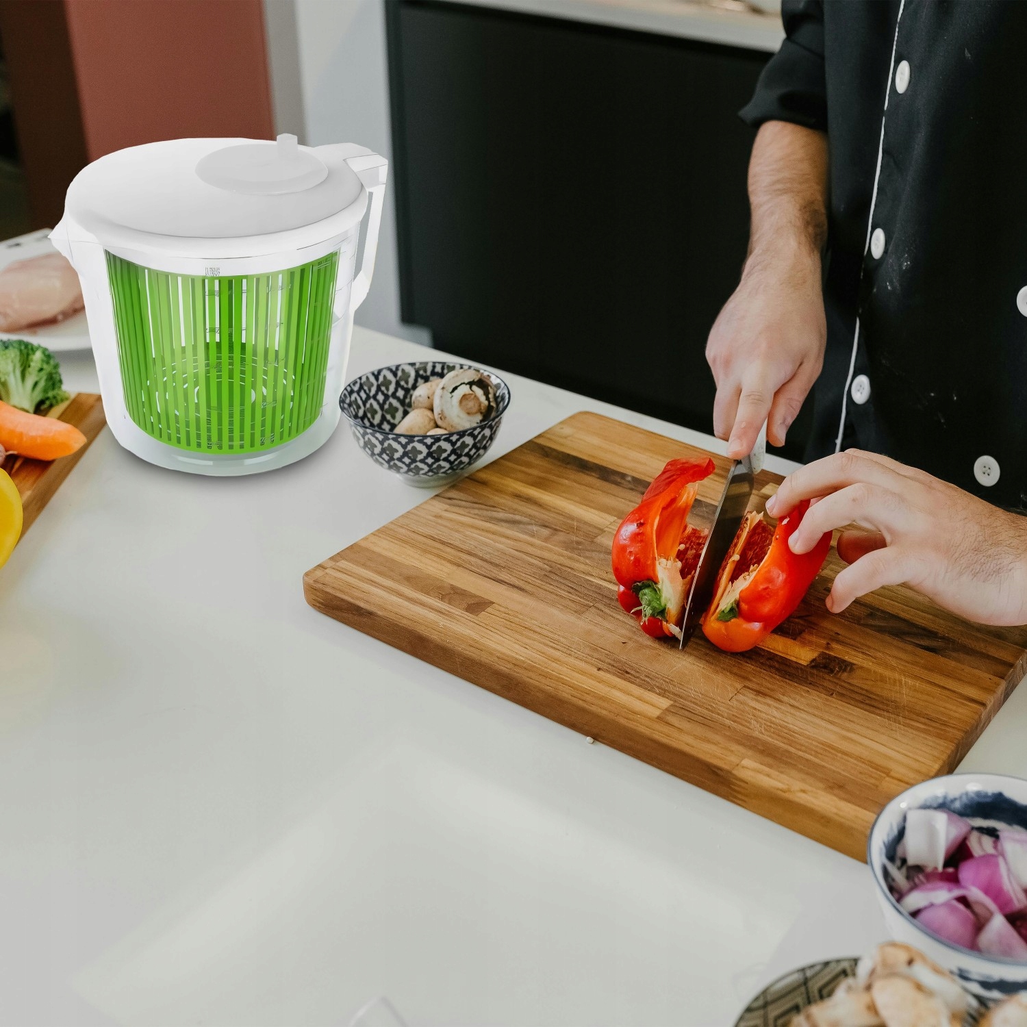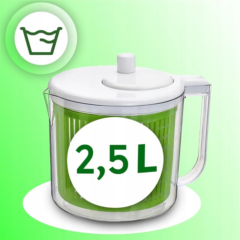 Салатный вихрь обеспечивает быстрое и эффективное удаление воды из овощей, фруктов и трав, благодаря которой ингредиенты остаются свежими , хрустящим и натуральным вкусом.
