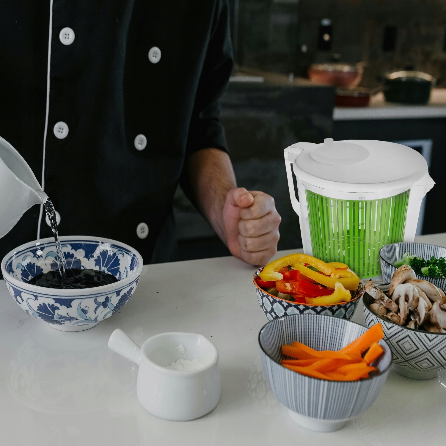 благодаря вращению механики вода равномерно удаляется с поверхности ингредиентов, что позволяет вам получить идеальные результаты за короткое время.