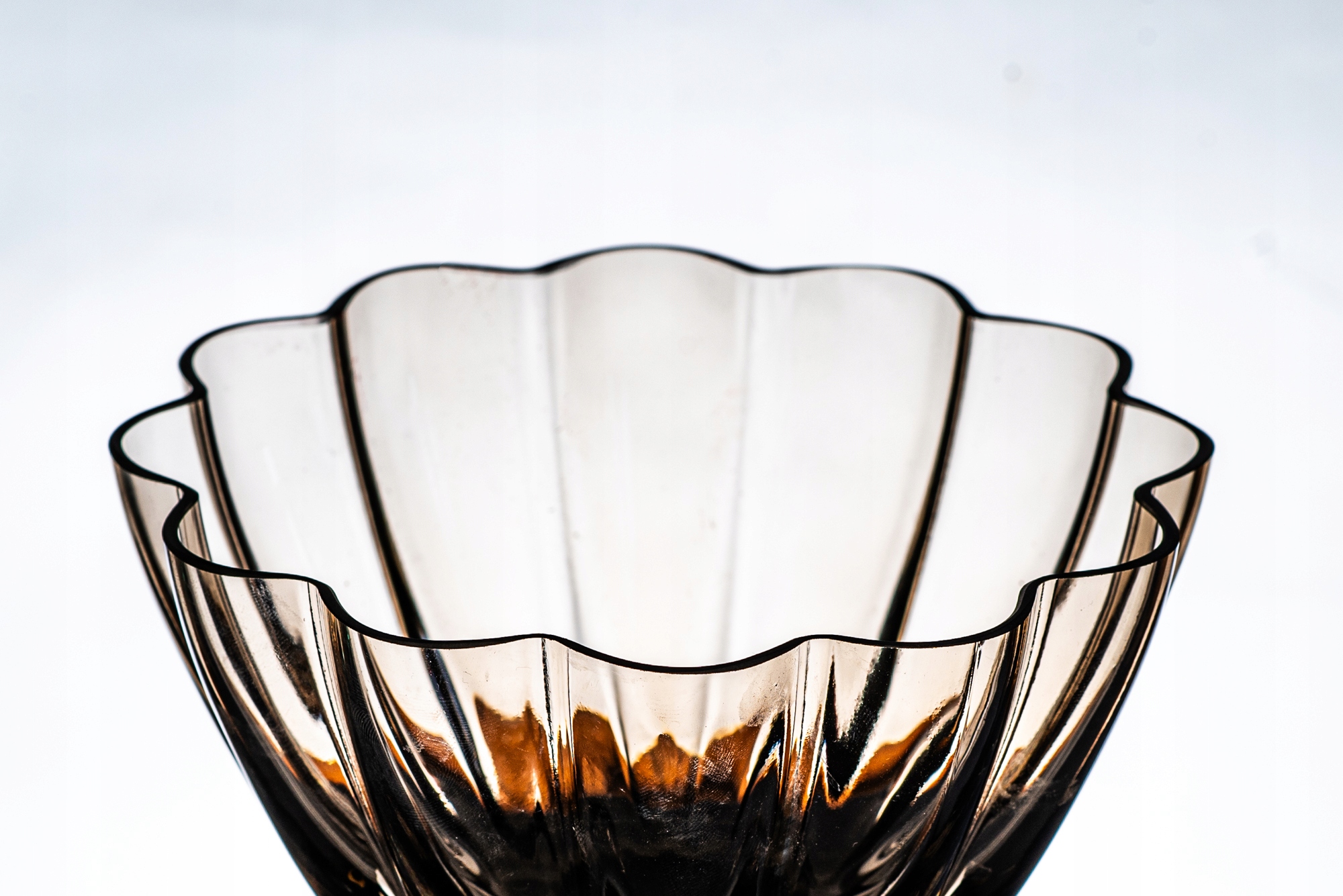 Очень элегантный салатник ребристой формы, напоминающий ракушку. Дымчатый цвет. Ручная работа в Кросно.