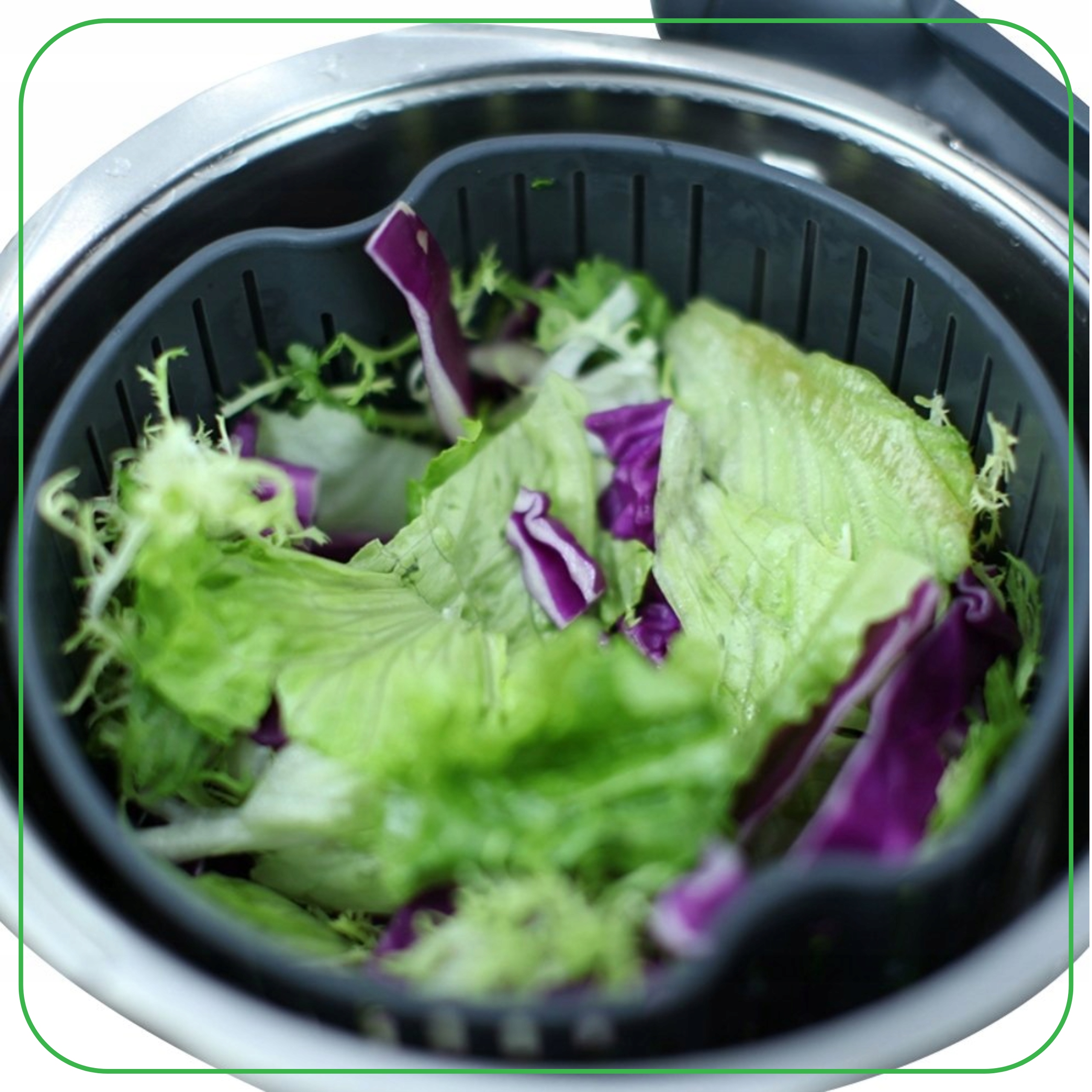 После мытья салата просто поместите его в центрифугу, выставьте подходящую скорость и через несколько секунд салат будет готов к подаче!