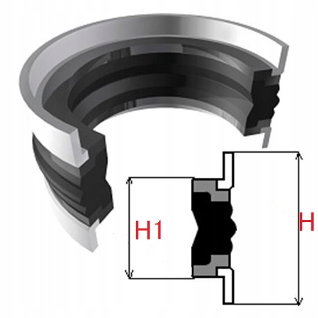 TPM - пакетно-поршневое уплотнение двустороннего действия, состоит из 5 элементов: центральная часть из резины NBR, 2 опорных кольца изготовлен из термопластичного материала - ТПЭ (смесь нескольких твердых термопластов) и 2 направляющих колец (ПОМ).