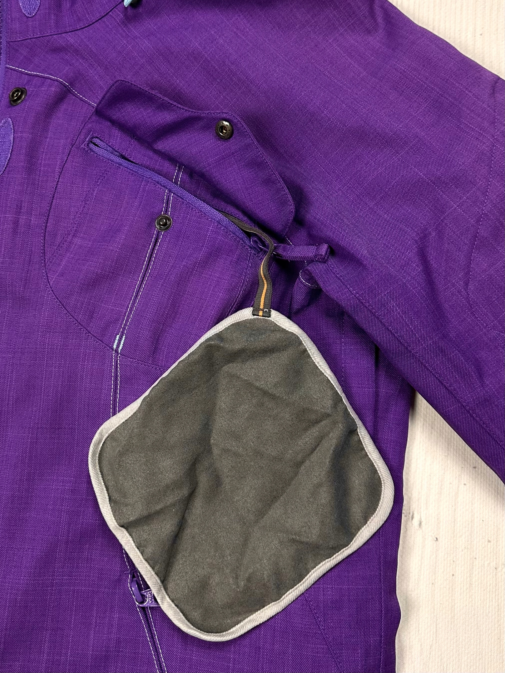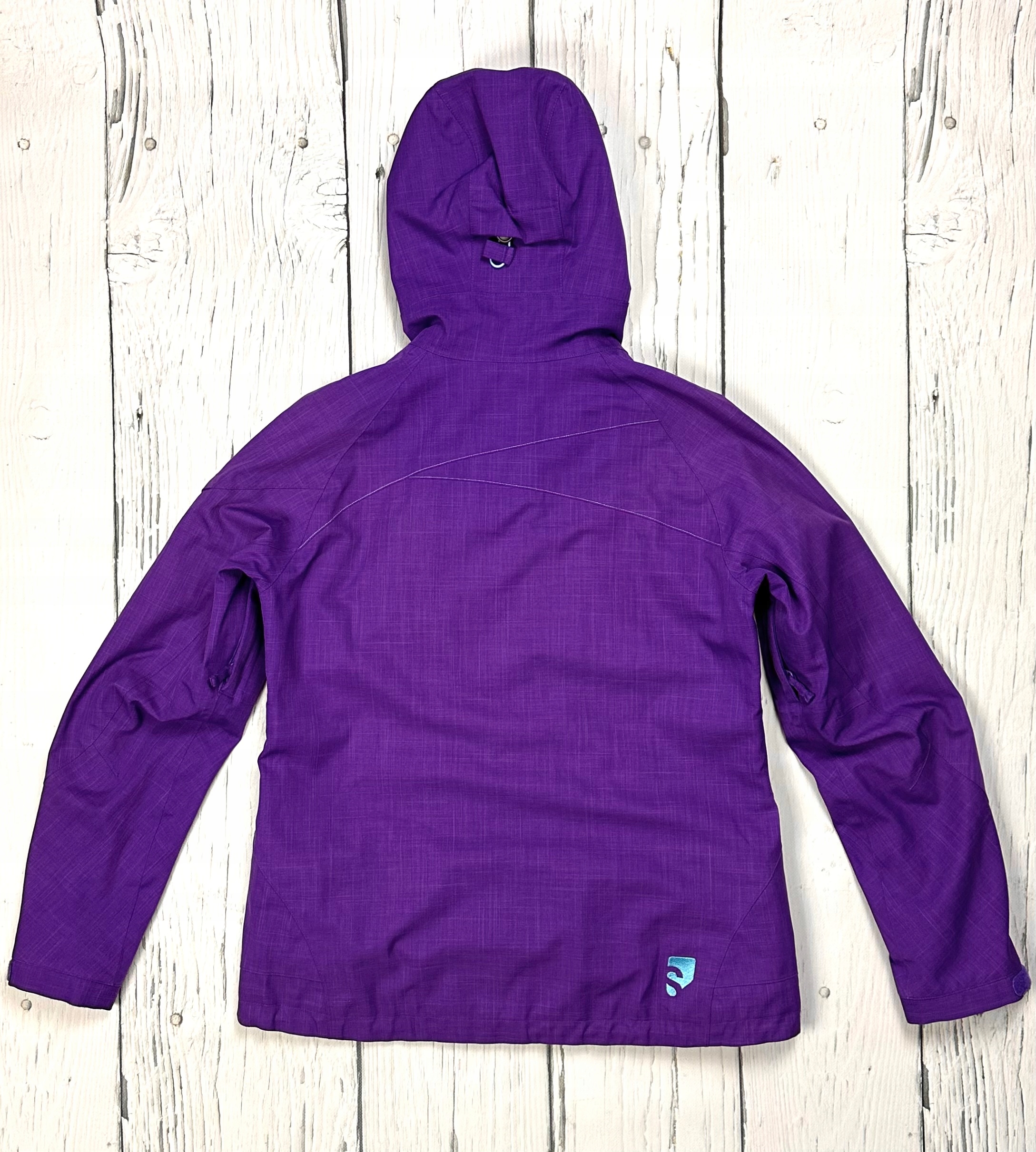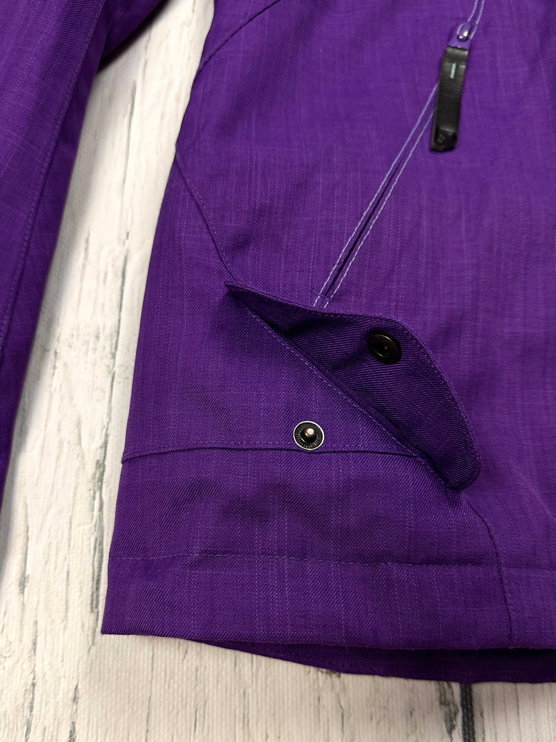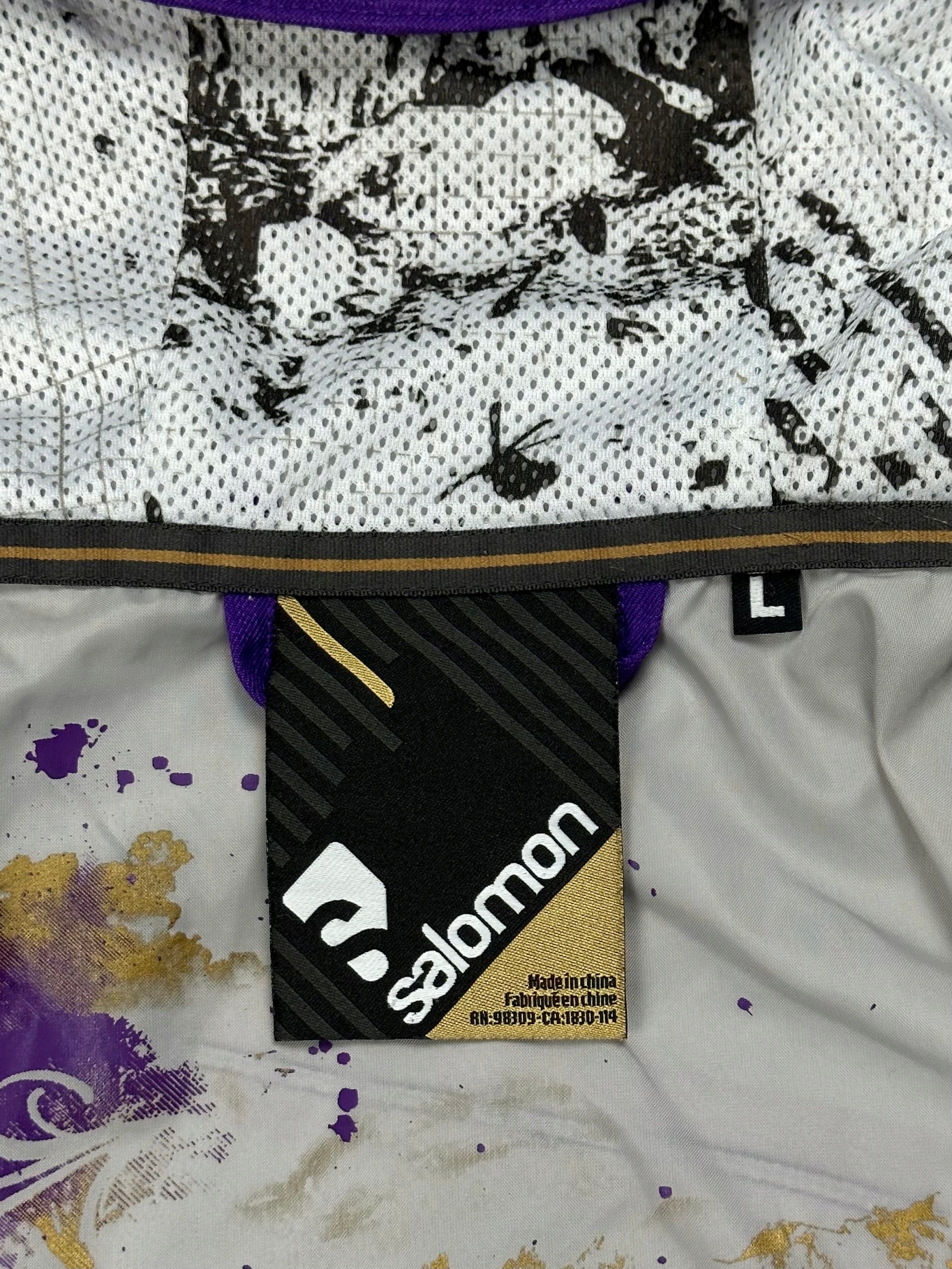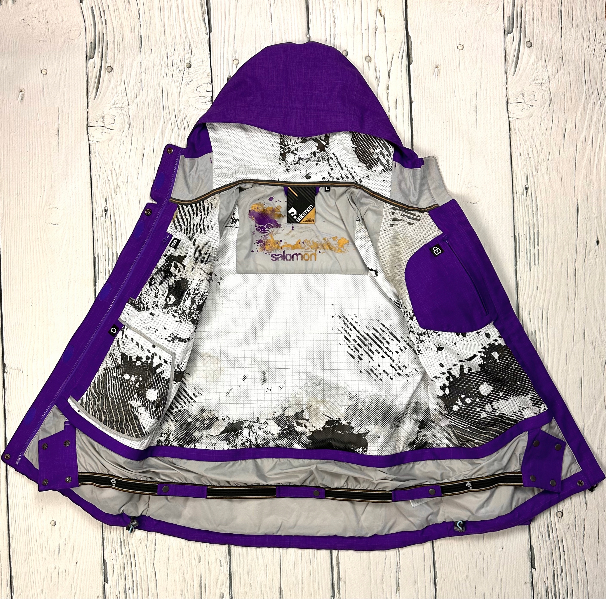I am selling a women's ski jacket with a Clima Pro membrane, a snow belt, many functional external and internal pockets, a logo on the Salomon's shoulder
