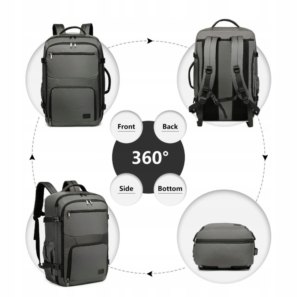 Большой водонепроницаемый серый гибкий рюкзак объемом 40 л для самолета