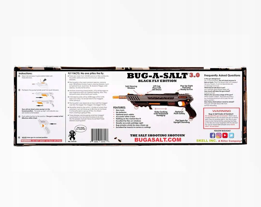 Ружье для насекомых Карабин для мух, комаров и ос Соляная пушка Соляная пушка Соляная пушка Bug-A-Salt 3.0 Black Fly BS63-SG-EU