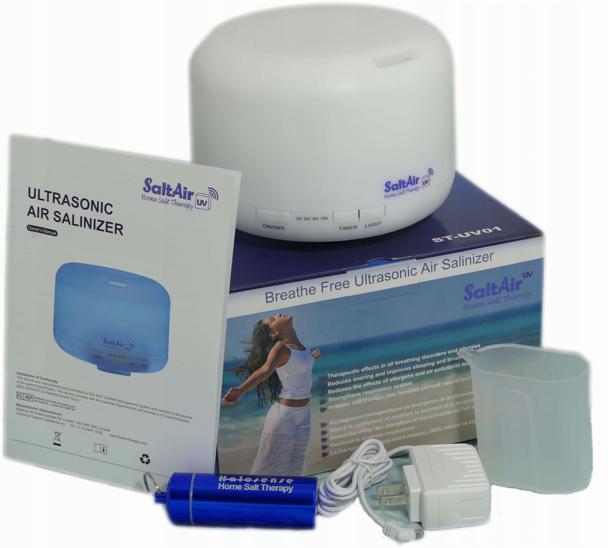 Saltair UV был оснащен ультрафиолетовым светом, который оставляет стерильное устройство, поддерживая его на самом высоком уровне гигиены в среде без вредных организмов. Ультразвуковое ультрафиолетовое излучение Saltair генерирует легко впитываемые частицы соли, которые достигают легких и альвеол. Соль поддерживает очистку тела выделения, убивает бактерии, уменьшает воспаление и увлажняет дыхательную систему.
