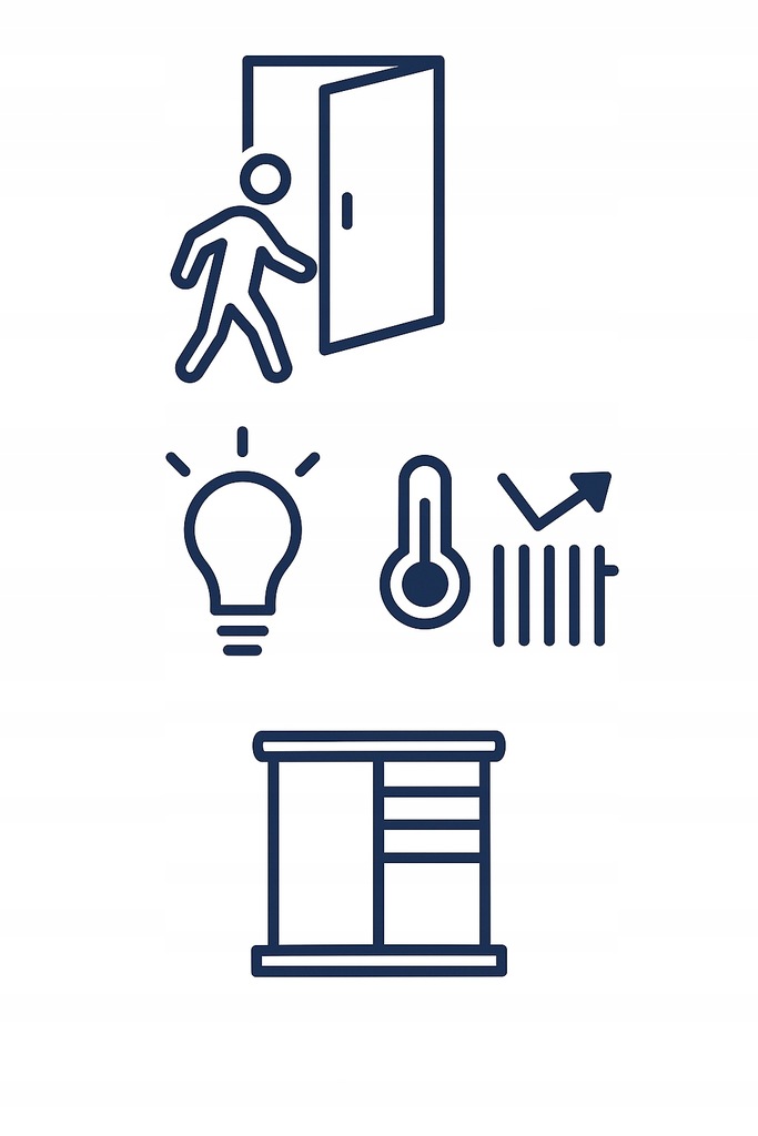 🚪 Режим «ВНЕ ДОМА» — выключает отопление и освещение, снижая энергопотребление. потребления