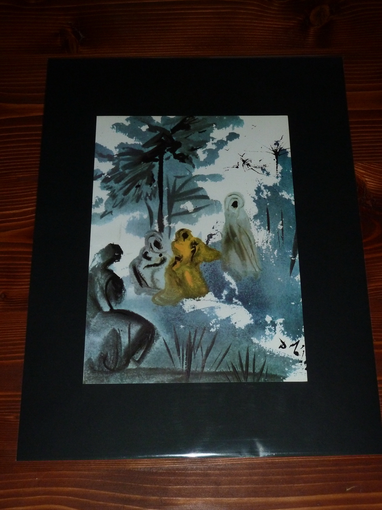 У меня есть иллюстрация Сальвадор Дали в серию «Библия Сакра» . Первое французское издание, опубликованное с согласием автора в 1972 году (в течение жизни художника). На другой стороне листа есть цитата из Библии в J. French, как на прикрепленной фотографии. иллюстрация никогда не связана, очень хорошее поведение .