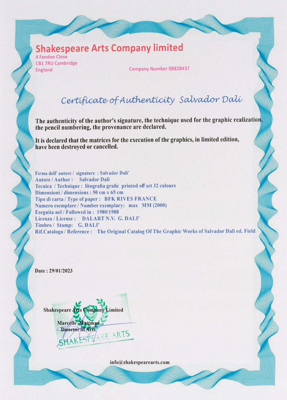 Размеры: 50 см x 70 см . Сертификат компании Shakespear Arts Company прилагается к работе.