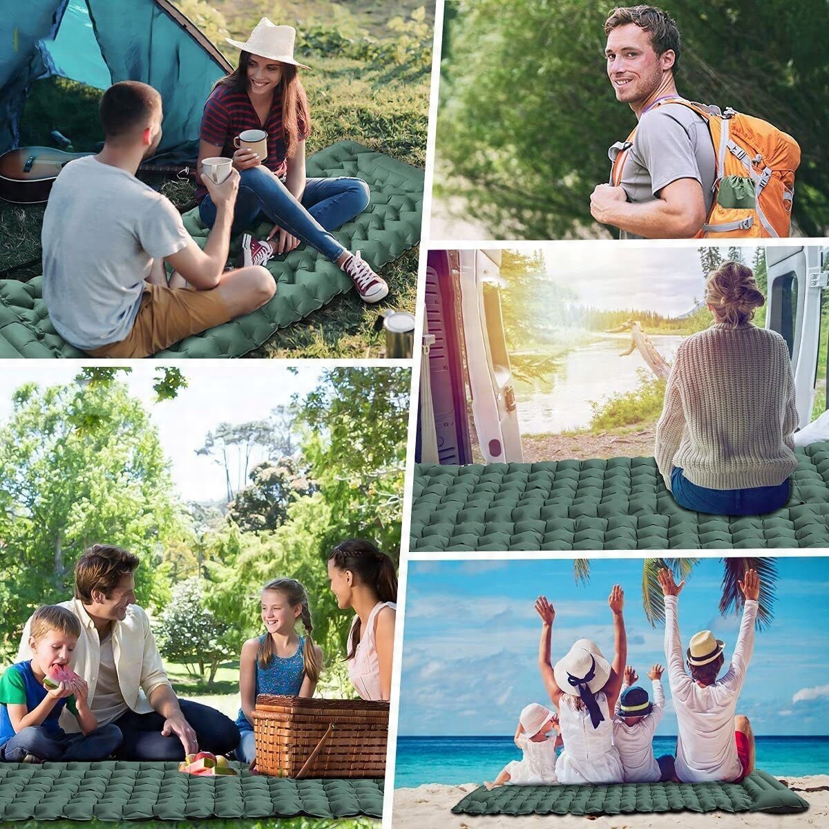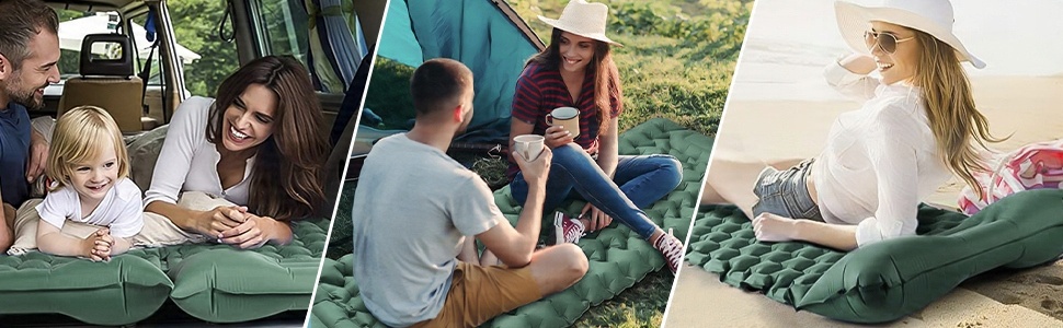 коврик для кемпинга, надувной пенопластовой прокладки, кемпинг, блуждание, на пляже, на путешествиях (зеленый цвет)