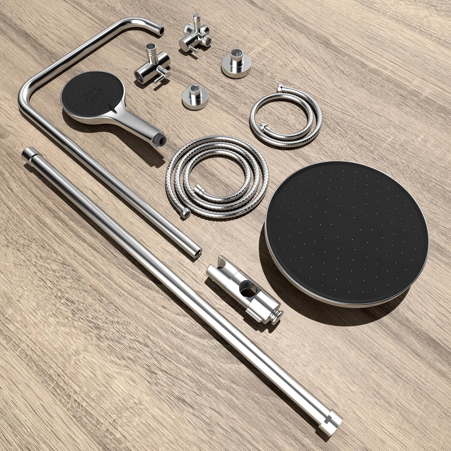 - Насадка для тропического душа и 3 режима струи Ручной душ: Наш инновационный встроенный механизм самоочистки обеспечивает простоту обслуживания. Когда вы включаете воду, чистящая булавка поднимается и осторожно выпускает воду. После отключения воды штифт упадет и вытолкнет скопившуюся воду.