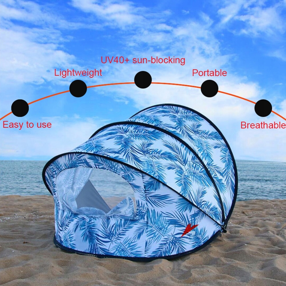 1. Автоматическая сами -сами -самие пляжная палатка, весом всего 1,5 кг, может быть быстро развернута и сохранена . двойное, большое окно , слой сетки и полиэфирная ткань могут быть свернуты отдельно. 190T Серебряные анти -ультравиолевые полиэфирные ткани. Стальная проволочная рама 6 мм, , что делает его более стабильным. с двумя мешками песка для улучшения стабильности палатки на ветру