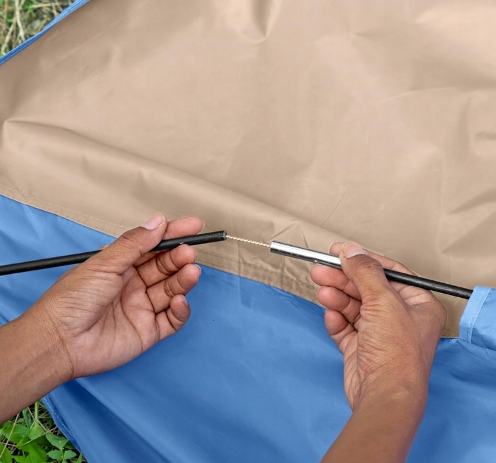 , оборудованным твердыми стекловолоконными стержнями , 4 Posts , а также песчаные карты , которые обременяют палатку. Все вместе создает сильную, стабильную структуру, которая хорошо прилипает к земле.