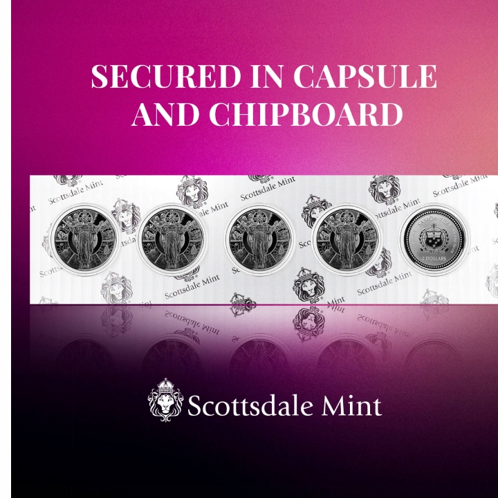 На аверсе серебряной монеты изображен герб Самоа и надпись «САМОА 2024». На аверсе также содержится информация о стране-эмитенте, номинале монеты, весе и чистоте металла.