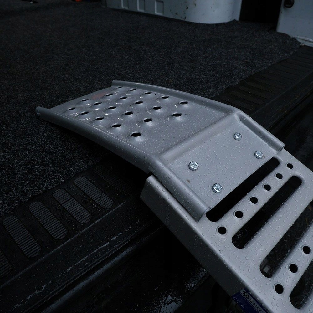 Комплект рампы GEKO включает в себя две складные прочные рампы для автомобилей или мотоциклов с шириной шин до 225 мм.