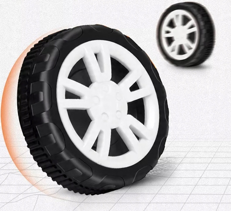 У райдера есть руль с гудком, все крепится винтами. Руль плавно поворачивается в сторону. При повороте руля два передних колеса плавно поворачиваются.