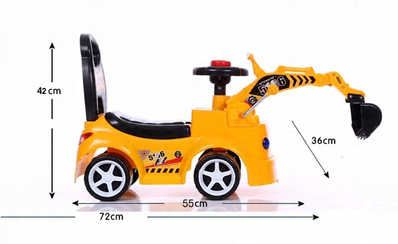 Представленный экскаватор станет идеальным транспортным средством для вашего будущего строителя. В нем много реалистичных элементов, которые наверняка заинтересуют вашего ребенка. Он имеет подвижную головку, которой можно управлять с помощью рычага.