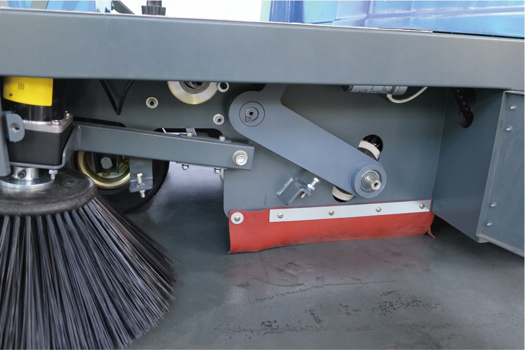 Устройство оснащено 3 щетками, общая ширина очистки которых составляет 1150 мм. Боковые щетки диаметром 400 мм каждая сметают всю грязь с поверхности под устройством, которая затем с помощью основной щетки переносится в бак для отходов.