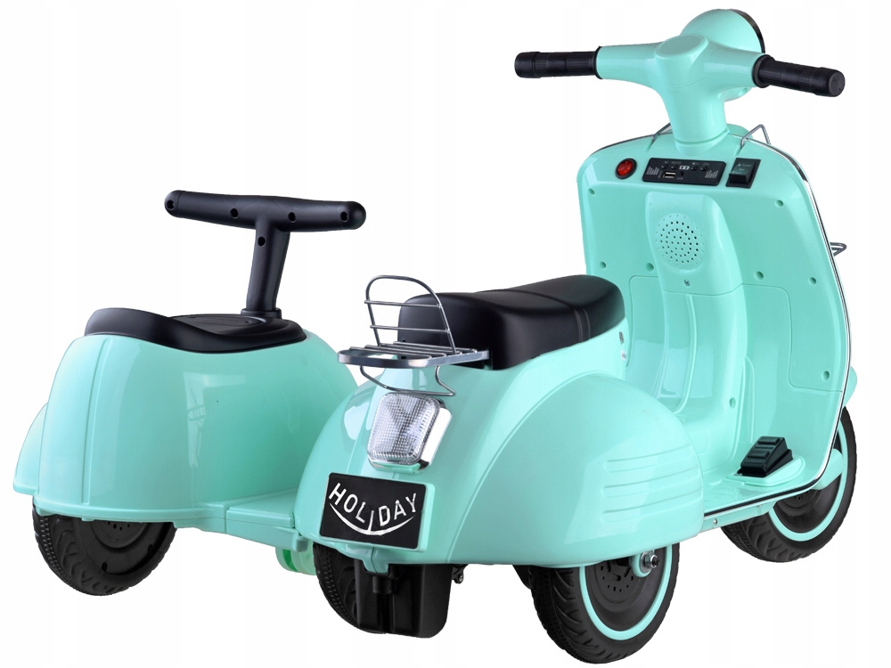 Красивый, стильный самокат с прицепом – это первый электромобиль для вашего малыша. Мотоцикл, безусловно, оправдает ожидания маленького водителя. Благодаря классическому стилю и небольшим размерам он прекрасно подойдет как для домашних, так и для парковых дорожек.