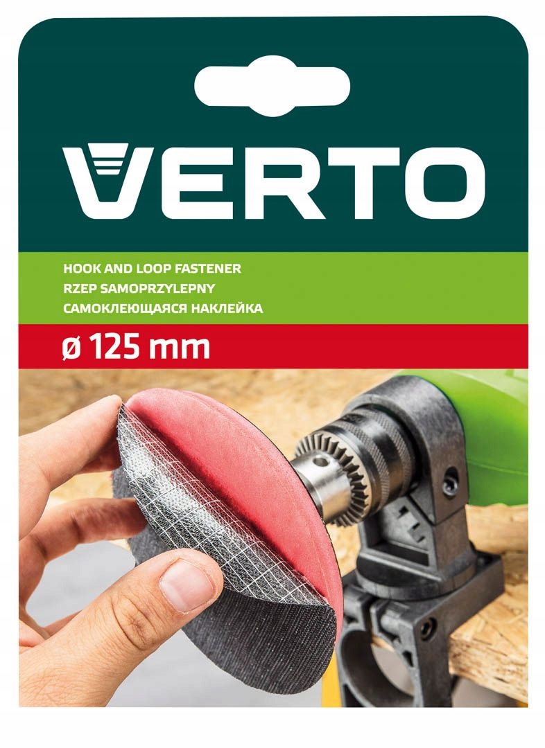 Самоклеющаяся липучка VERTO (арт. № 61H702) диаметром 125 мм, позволяющая заменить поврежденную липучку в гибких дисках для дрелей и дисках эксцентриковых шлифовальных машинок. Бренд VERTO предлагает широкий выбор электроинструментов и аксессуаров для каждого любителя DIY.