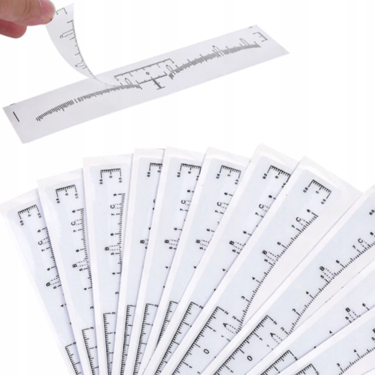 Набор из 10 самоклеящихся линеек для бровей. На каждой наклейке есть линейка с обозначенным центром. Удобен в использовании благодаря овальной форме. Нанесение после обезжиривания кожи.