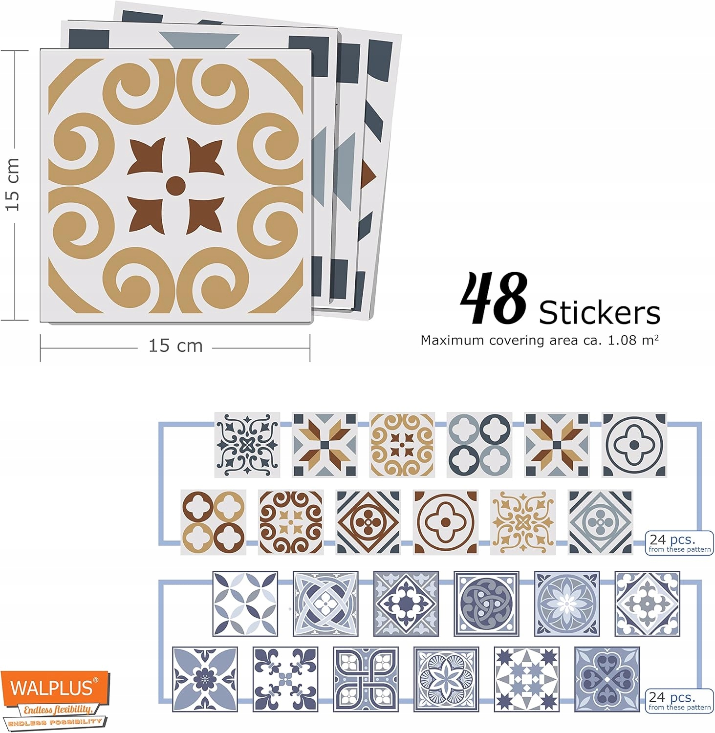 Walplus съемные, самоклеящиеся наклейки на стену, винил, отделка квартиры, гостиной, спальни, кухни, обои, Нёня, коричневый и синий, 48 шт. 15 см х 15 см.