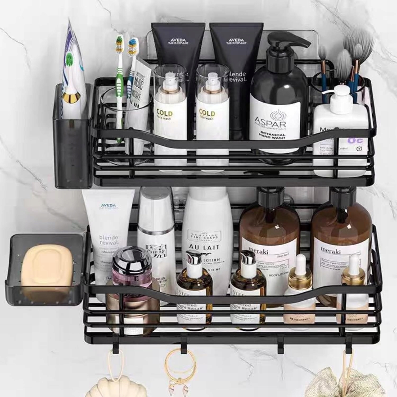🌊-Можно использовать для хранения шампуня, средств по уходу за телом, скрабов, мыла, очищающего средства для лица, зубной пасты, бритв, специй, приправ и т. д.