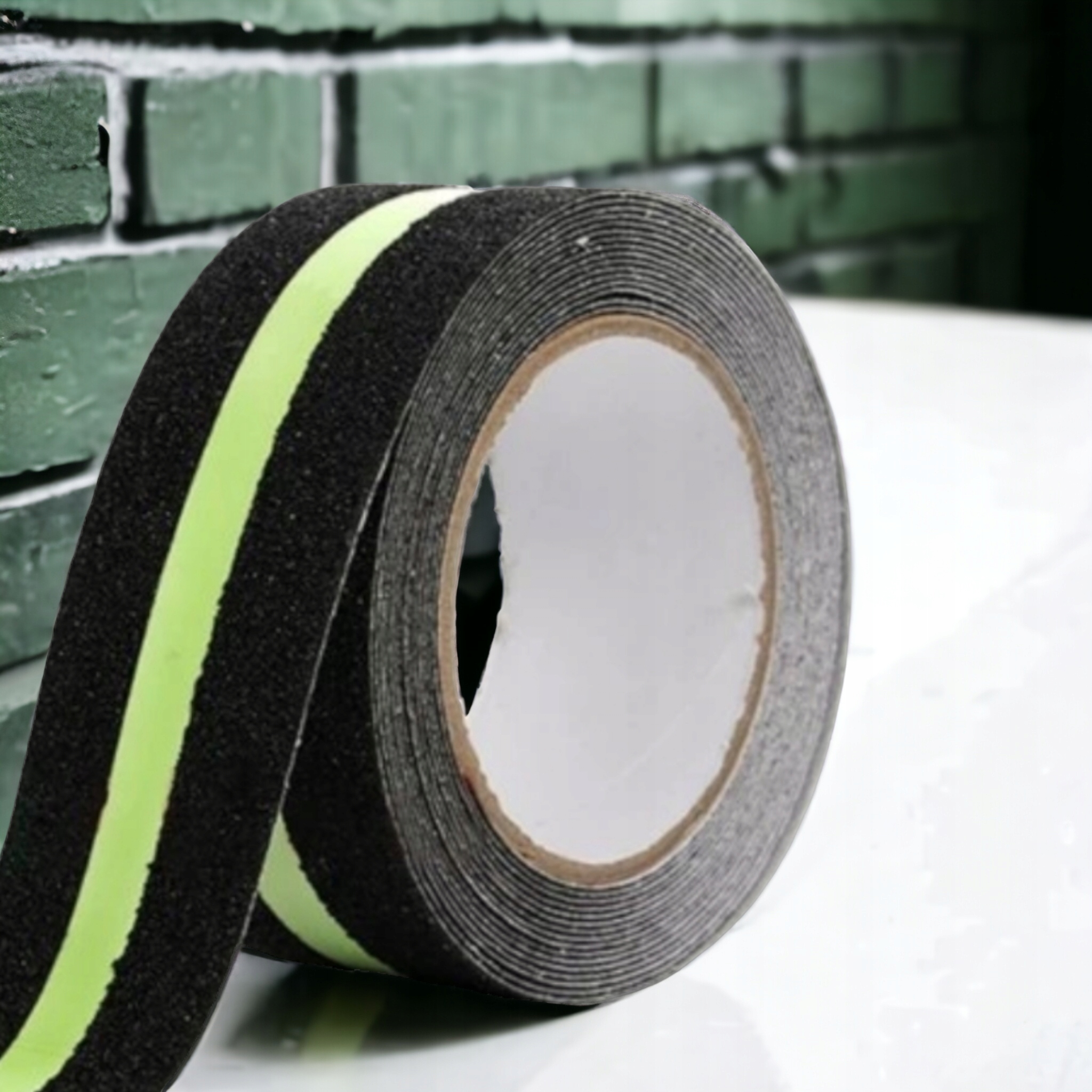 Самоклеящаяся противоскользящая флюоресцентная лента. Противоскользящая поверхность ленты сделает спуск по лестнице более безопасным. . Посередине имеется флуоресцентная полоса, которая сделает ступеньки более заметными в темноте. Лента может использоваться как внутри, так и снаружи и устойчива к погодным условиям. Изделие можно свободно разрезать в зависимости от наших потребностей.