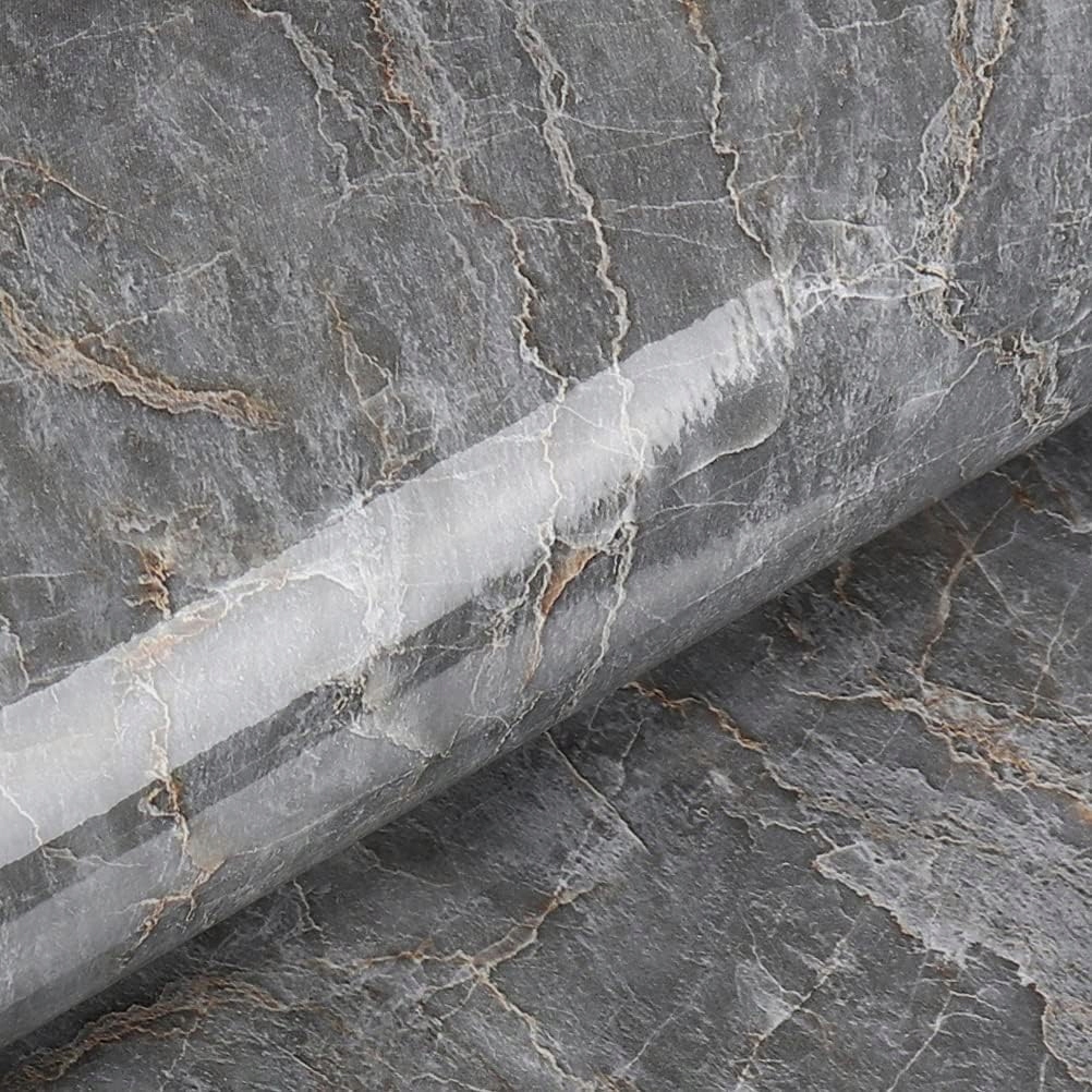 🧱🧱🧱 【Обновите свое пространство】 Самоклеящиеся обои под мрамор 60х500 см, реалистичная текстура темно-серого мрамора с золотой филигранью в центре, немного роскошный и свежий стиль, элегантный. Идеально подходит для арендаторов, домовладельцев, реставраторов мебели и тех, кто хочет преобразить свои пустые комнаты.