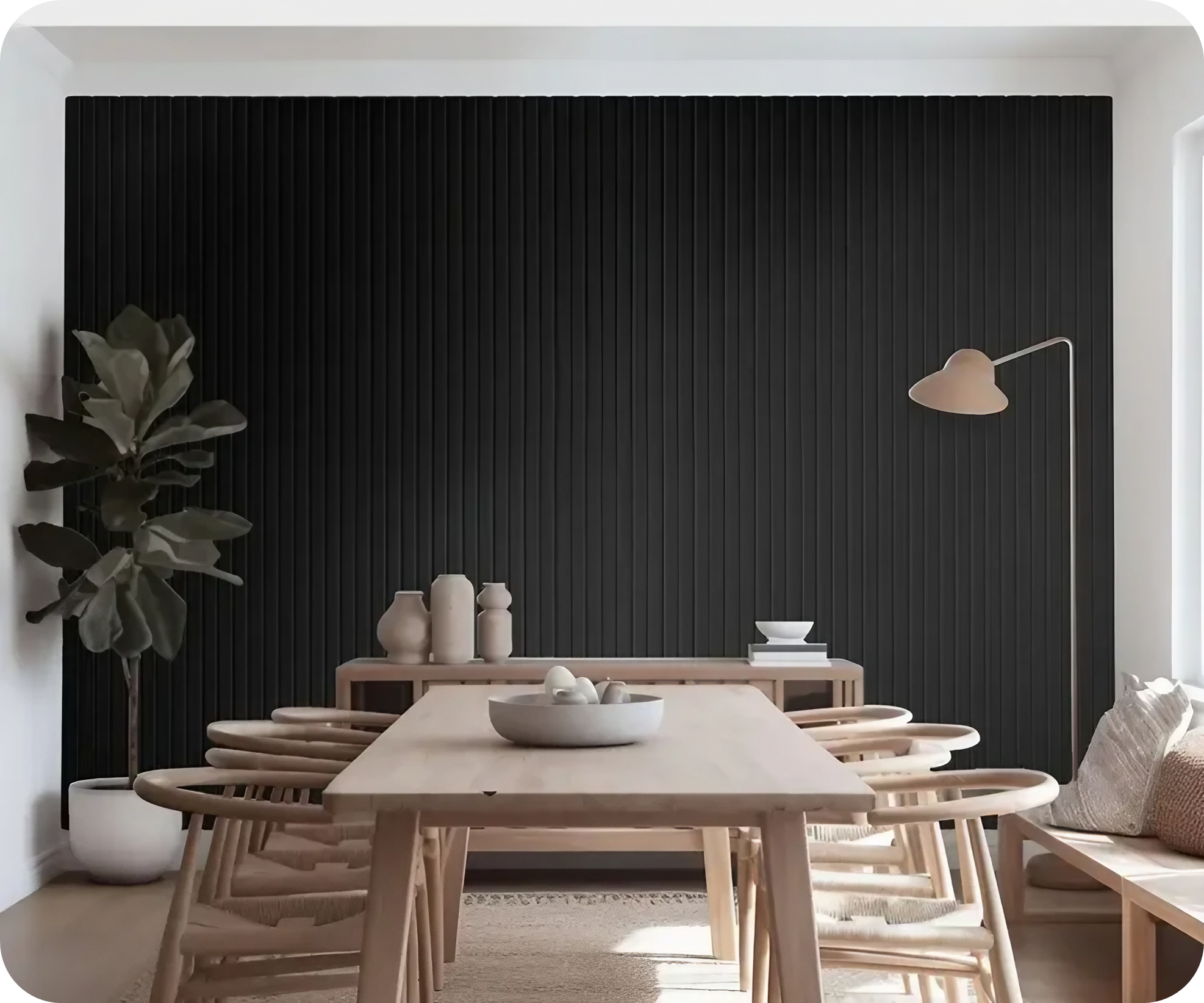 Добавьте стиль и функциональность в свой интерьер благодаря нашей фетровой доске в виде ламелей. Размеры 120х60 см и толщина 9 мм делают его идеальным решением как для офиса, так и для домашнего офисаили детская комната. Доска элегантного черного цвета является не только практичным местом для хранения заметок или вдохновения, но и декоративным акцентом.