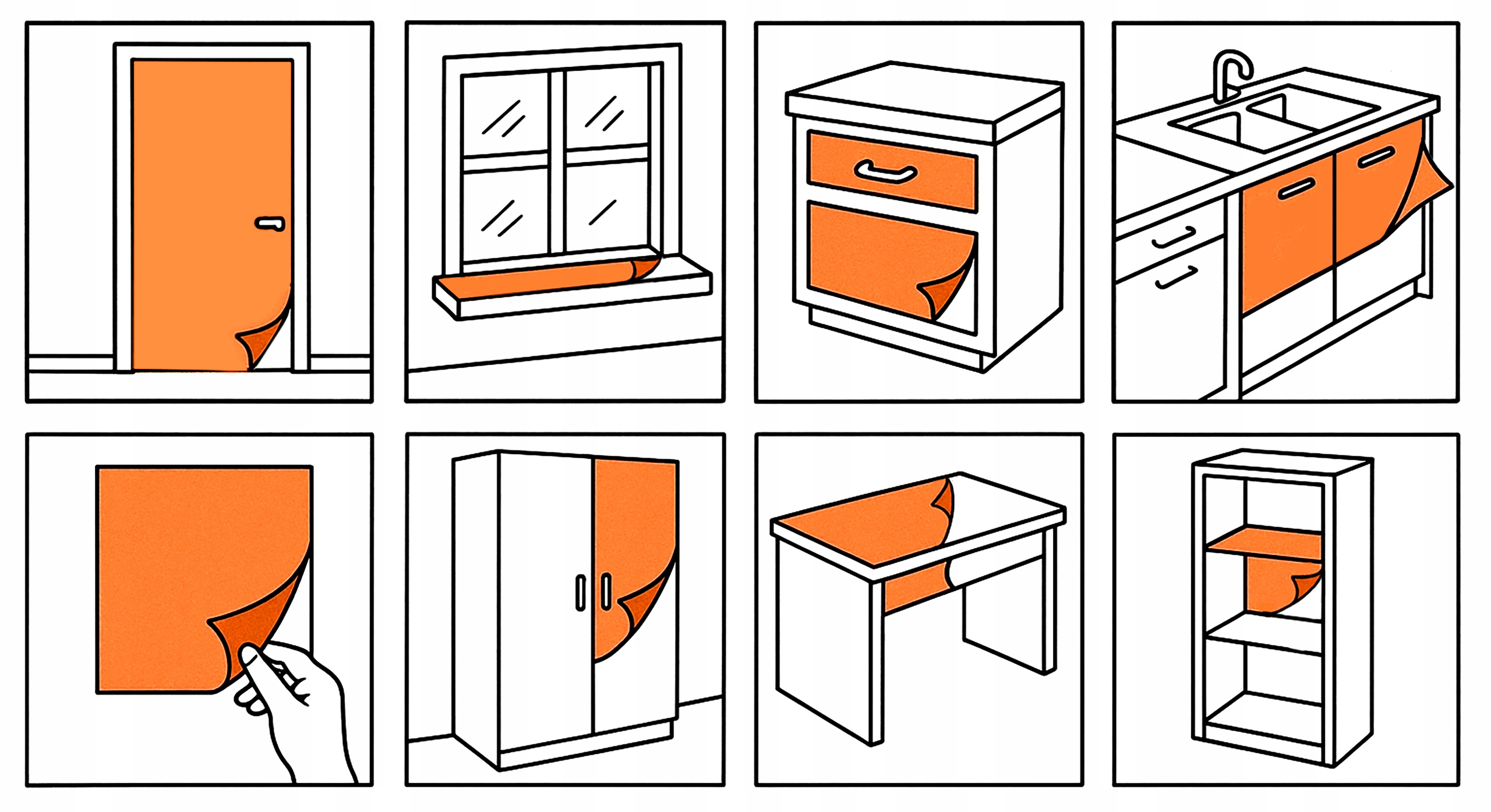 Сфера применения шпона (самоклеящейся фольги) очень широка и в основном включает в себя: