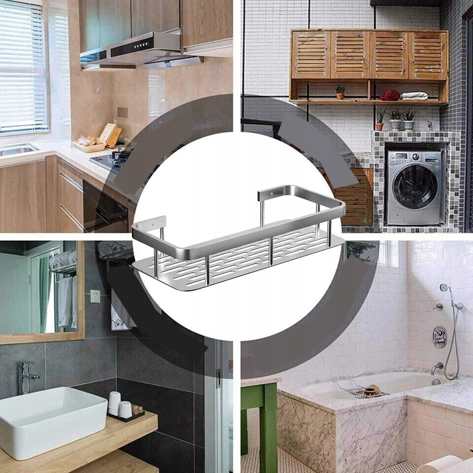 Полка для хранения изготовлена из алюминия космической эры. , устойчив к ржавчине и коррозии, легко чистится, идеально подходит для использования во влажной ванной комнате или замасленной кухне.