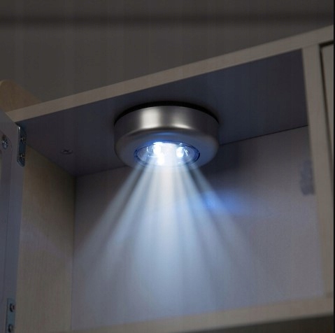 Лампа включается и выключаетсящелканием пальца в ее центре >. Он оснащен самоклеящейся лентой, поэтому его можно крепить буквально куда угодно.