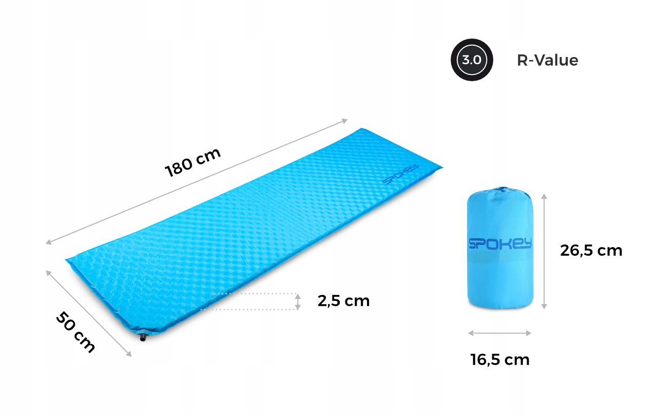 Самонадувающийся туристический коврик Spokey AIR PAD – самое комфортное решение. Просто откройте клапан, и он автоматически наполнится воздухом. Это позволяет сэкономить время и силы во время длительных поездок, поездок на выходные или горных приключений. После наполнения воздухом можно добиться эффекта, аналогичного отдыху в постели. Именно поэтому это лучший выбор для размещения в палатке или навесе.