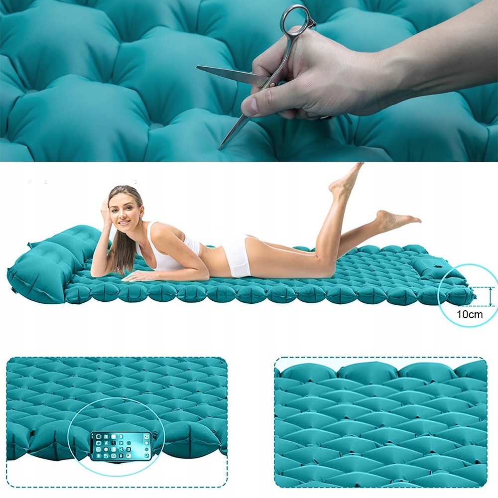 - Самонадувающийся матрас изготовлен из высококачественного нейлона 40D и высококачественного материала ТПУ. Он надувной, но прочный, водонепроницаемый и защищенный от ночи. Он также обладает высокой несущей способностью, устойчив к проколам и разрывам.
