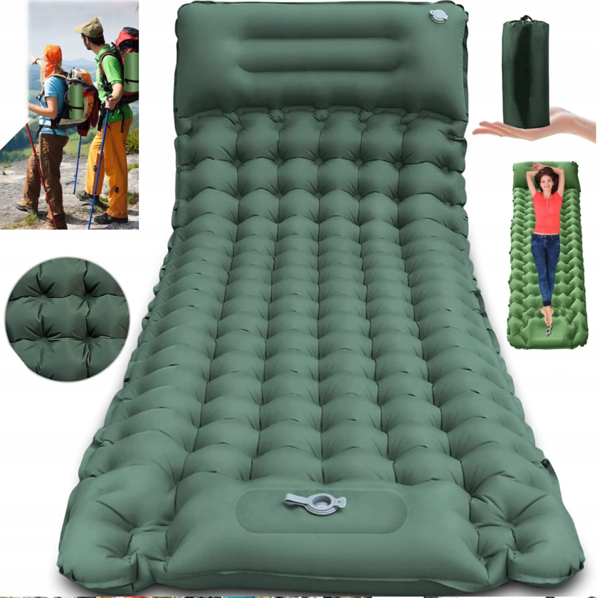 HAUSPROFI Самонадувающийся спальный коврик, 11 см. Улучшенный спальный коврик на воздушной подушке, кемпинг, надувной спальный коврик, походный матрас, надувной матрас, походный коврик с ножным насосом и подушкой для улицы, военный