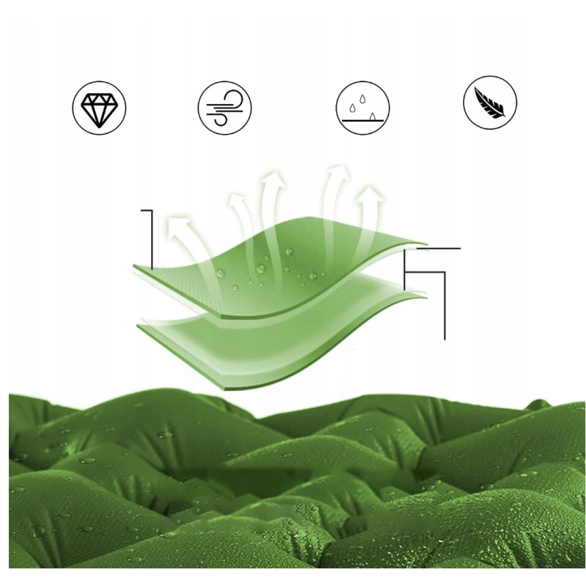 - ⛺Высококачественная 40D ламинированная нейлоновая ткань из ТПУ придает этому походному коврику хорошую эластичность, водонепроницаемость, устойчивость к истиранию и разрыву. а в надутом состоянии он может выдерживать максимальный вес 660 фунтов (250-300 фунтов). кг).