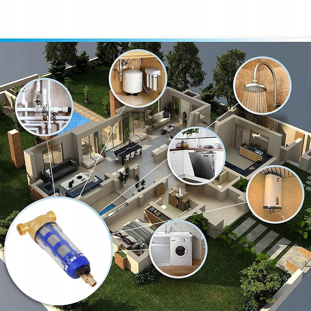✅ Удерживает частицы, песок, ржавчину и другие загрязнения в воде, защищая трубы и приборы во всем доме.
