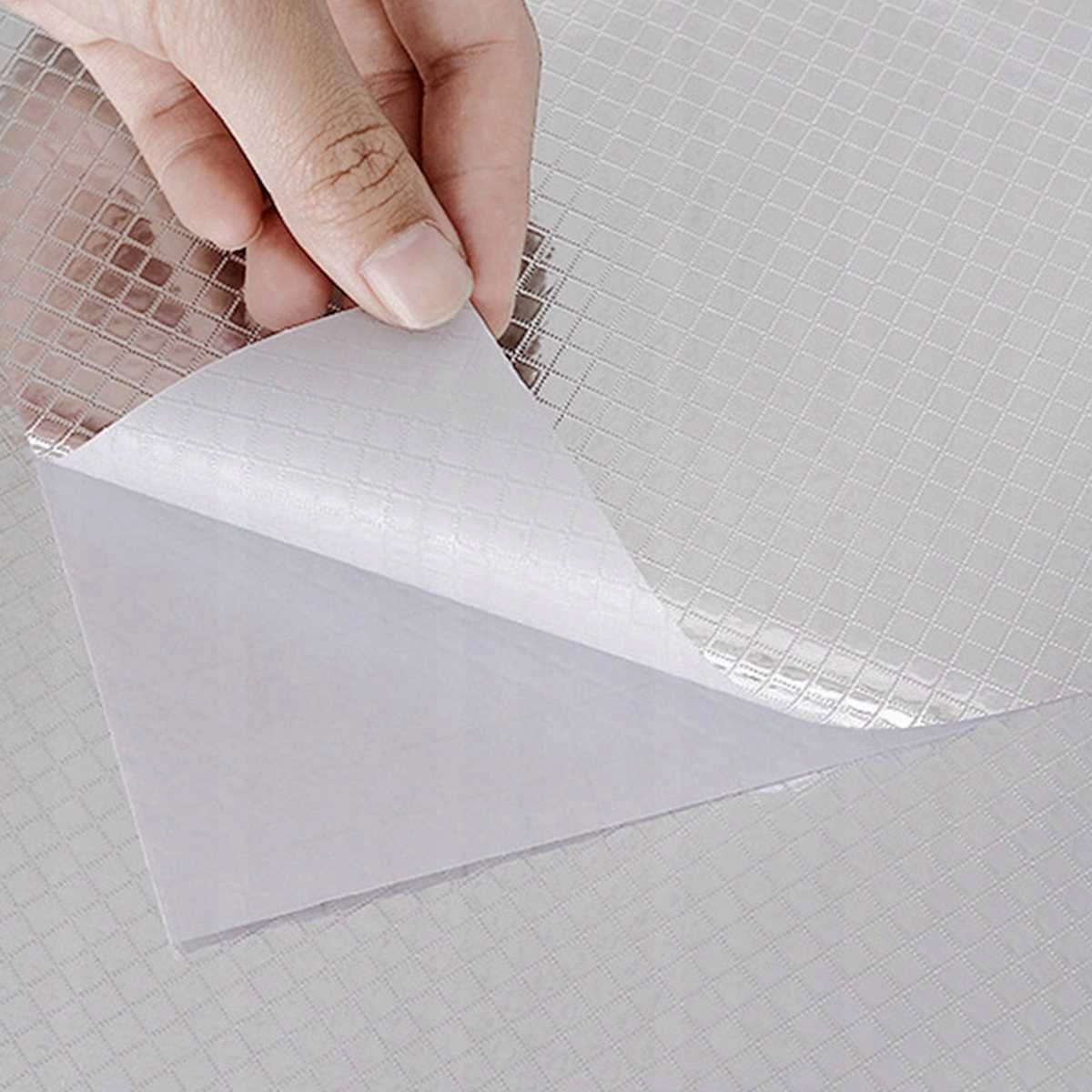 ✅Кухонная пищевая пленка очень проста в использовании. Просто отрежьте ее нужного размера, а затем наклейте на поверхность, которую хотите наклеить. Есть удобный. режущая сетка сзади, легко разрезать и украсить собственную кухню фольгированной самоклеящейся пленкой.