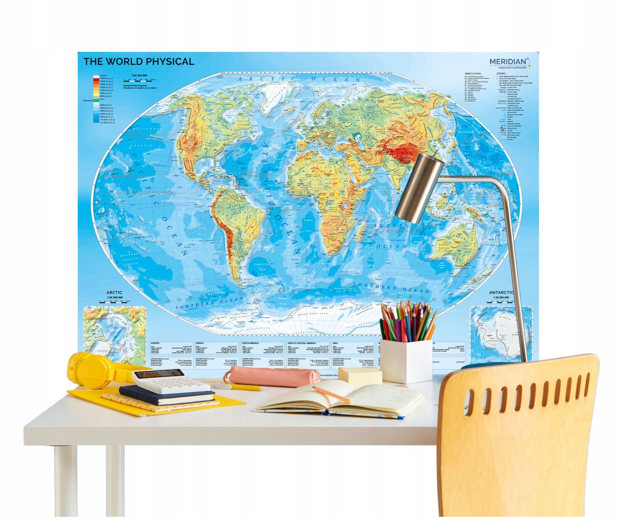 Samoprzylepna mapa fizyczna Świata po angielsku 2025 MERIDIAN