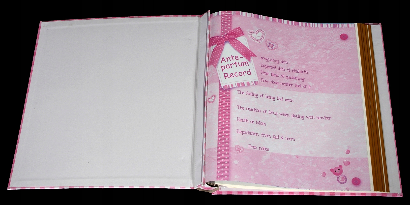 Первая страница альбома – это краткое описание беременности матери ребенка, срока родов и течения беременности.Следующие 7 красочных страниц – место для описания первых моментовСледующие 7 красочных страниц – место для описания первых моментов b>и незабываемые моменты жизни ребенка,а также место, где можно произвести впечатление ногой или рукой :)