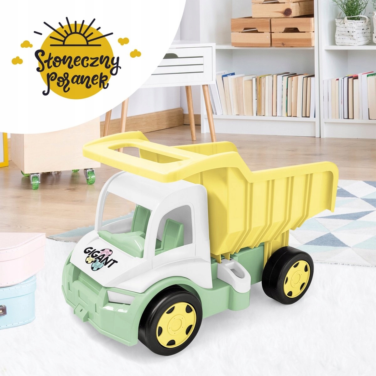 Słoneczny Poranek — это сочетание пастельных оттенков солнечно-жёлтого, серого, белого и нежного цвета морской волны, с которым прекрасно сочетаются наши игрушки: Самосвал-гигант, трио Kid Cars, Misiowa Piramidka. , Kręgle, Кофейный сервиз и набор для замков из песка.