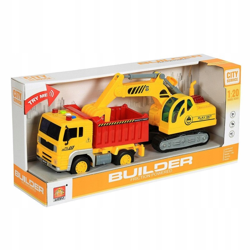 Строительные машины: самосвал и экскаватор со звуком и подсветкой